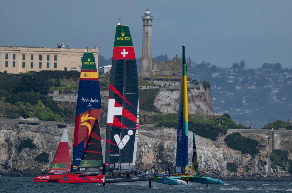 C’est en 2022 que Sébastien Schneiter rejoint SailGP. Un challenge qui ne fait pas peur au Genevois qui aime tout ce qui va plus vite et plus haut. Ski alpin, parapente, wing foil, et bateaux volants. Son ADN coche toutes les cases. Il embarque avec lui ceux qui étaient des aventures de Tilt. Le lancement de l’équipe n’est pas facilité par le retour en America’s Cup d’Alinghi Red Bull Racing qui aimante les appétits des jeunes navigateurs. Peu importe finalement. Depuis trois ans, Sébastien Schneiter est fidèle au poste. Il grandit. L’équipe grandit elle aussi. Sur l’eau, bien sûr, et en dehors, également. Le sérieux du projet séduit les sponsors qui s’engagent dans la durée. À bord, la méthode Tilt est toujours identique depuis plus de dix ans. Avec du travail, de l’humilité, mais surtout pas de complexe. Depuis trois ans, la progression est constante malgré de nombreux changements au sein de l’équipage. La dispersion des talents suisses entre SailGP et America’s Cup à Barcelone n’est désormais plus qu’un souvenir. Pour sa troisième saison sur le circuit, Switzerland SailGP Team a remis ses plus beaux œufs dans le même panier. Avec Sébastien Schneiter (barre), Arnaud Psarofaghis et Bryan Mettraux, le noyau de Team Tilt est reconstitué. Après une moitié de saison 2025, où elle manque encore de régularité, la Suisse se situe en milieu de tableau de cette flotte qui ne compte même plus les médailles mondiales, les titres olympiques et les victoires en Coupe de l’America et SailGP de ses acteurs principaux. C’est bien dans ce contexte de très haut niveau que les performances de Switzerland SailGP Team prennent toute leur signification. À commencer par l’éclatante victoire lors de la manche n°5 à San Francisco et premier podium à Portsmouth. Des réussites qui en appellent d’autres. Pourquoi pas à Genève ?