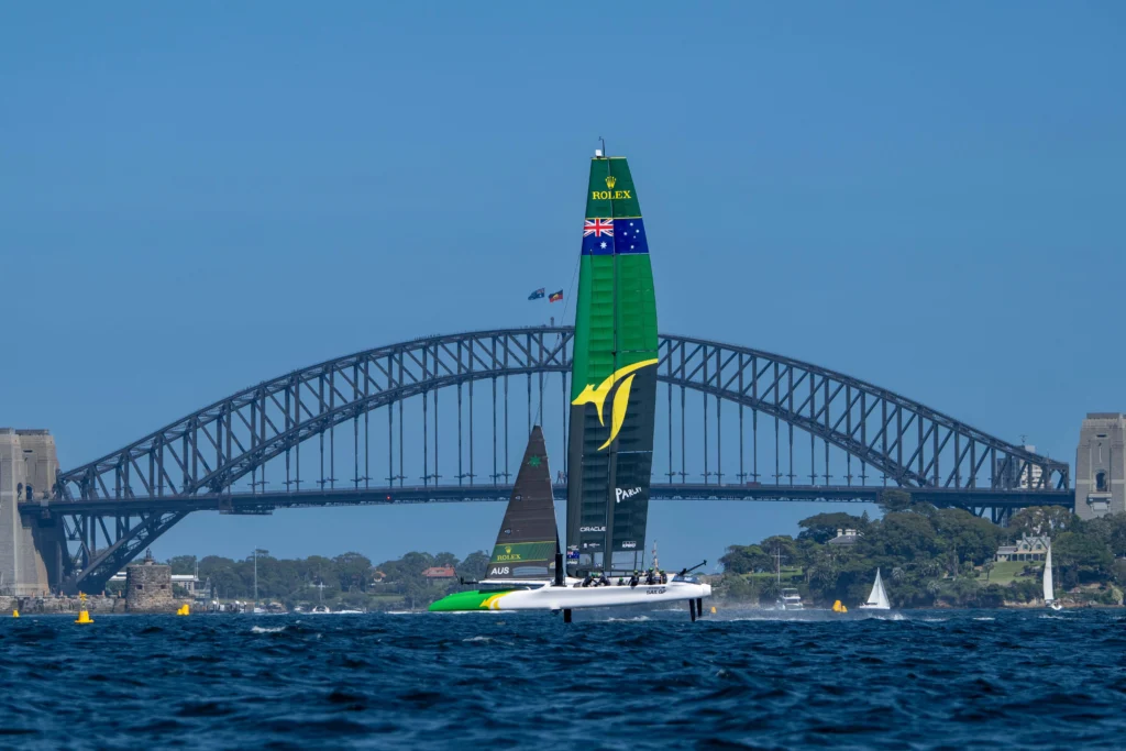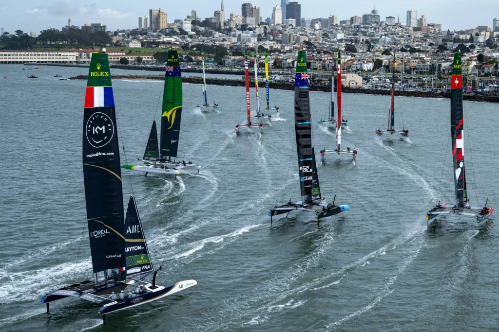 Rolex soutient SailGP depuis sa création en 2019. En effet, cela fait presque septante ans (1958) que Rolex trace son sillage sur les océans, de Sydney à Hobart, du légendaire phare irlandais du Fastnet aux contours volcaniques de la Middle Sea Race méditerranéenne. Partenaire historique des régates renommées, la maison genevoise a su ancrer sa précision horlogère dans l’univers exigeant de la mer. Du xviiie siècle à aujourd’hui, les montres de marine et les astres ont guidé les navigateurs. Les pionniers Sir Francis Chichester, Sir Robin Knox-Johnston et Bernard Moitessier portaient chacun une Rolex lors de leurs circum-navigations respectives. Aujourd’hui encore, le temps est une mesure essentielle du départ des F50 engagés en SailGP – un tempo que Sir Ben Ainslie maîtrise à la perfection.