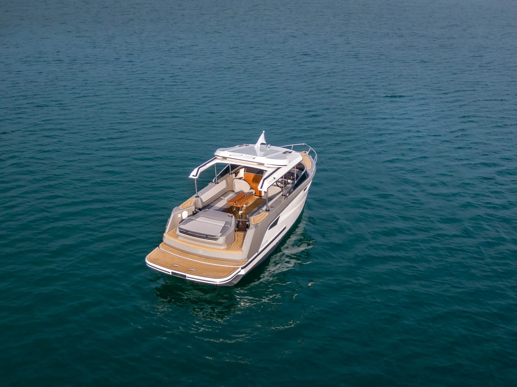 Le chantier slovène étoffe sa gamme avec ce 23 pieds raffiné dont le programme devrait bien s’adapter aux eaux intérieures. Son long hard top amovible lui confère un petit air de bateau-taxi. Avec une architecture à moteur in-board (essence ou diesel), le 23 Cabin Evo procure un accès à bord particulièrement pratique grâce à une vaste plateforme de bain et deux passages encadrant le solarium arrière. La partie centrale du cockpit consiste en un carré très convivial avec deux banquettes longitudinales dont l’assise peut se relever en dossier pour former deux bains de soleil. À l’heure du pique-nique, six à huit convives peuvent prendre place autour de la table en bois verni. Pour améliorer le service, une kitchenette est proposée en option. Les deux sièges de pilotage avec demi-assise relevable sont en forme de baquet. Le pare-brise s’ouvre en son centre vers le pont avant, tandis qu’une large porte autorise un accès facile à la cabine. Celle-ci, bien éclairée par deux vitrages de coque, comporte une couchette double spacieuse et un WC marin. Ce 23 pieds est aussi proposé avec une propulsion électrique pour un prix inférieur mais avec de petites puissances.