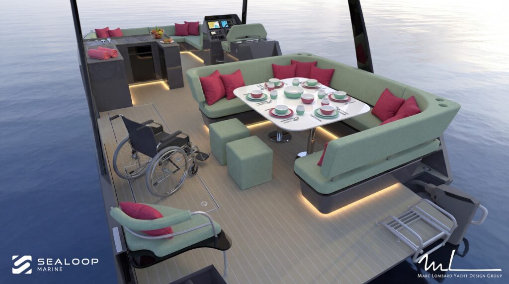 Sur le plan technique, les choix de Sea Loop Marine témoignent d’une vision industrielle cohérente. Les coques en aluminium sont fabriquées chez Alubat, tandis que le pont et les superstructures recourent à des composites à base d’époxy biosourcé et de fibre de lin. La construction intègre 70 % de matériaux recyclés, et 100 % du bateau sera valorisable en fin de vie — des chiffres rares dans le secteur. L’assemblage final se fait aux Sables d’Olonne, avec une chaîne d’approvisionnement concentrée dans un rayon de 30 kilomètres.