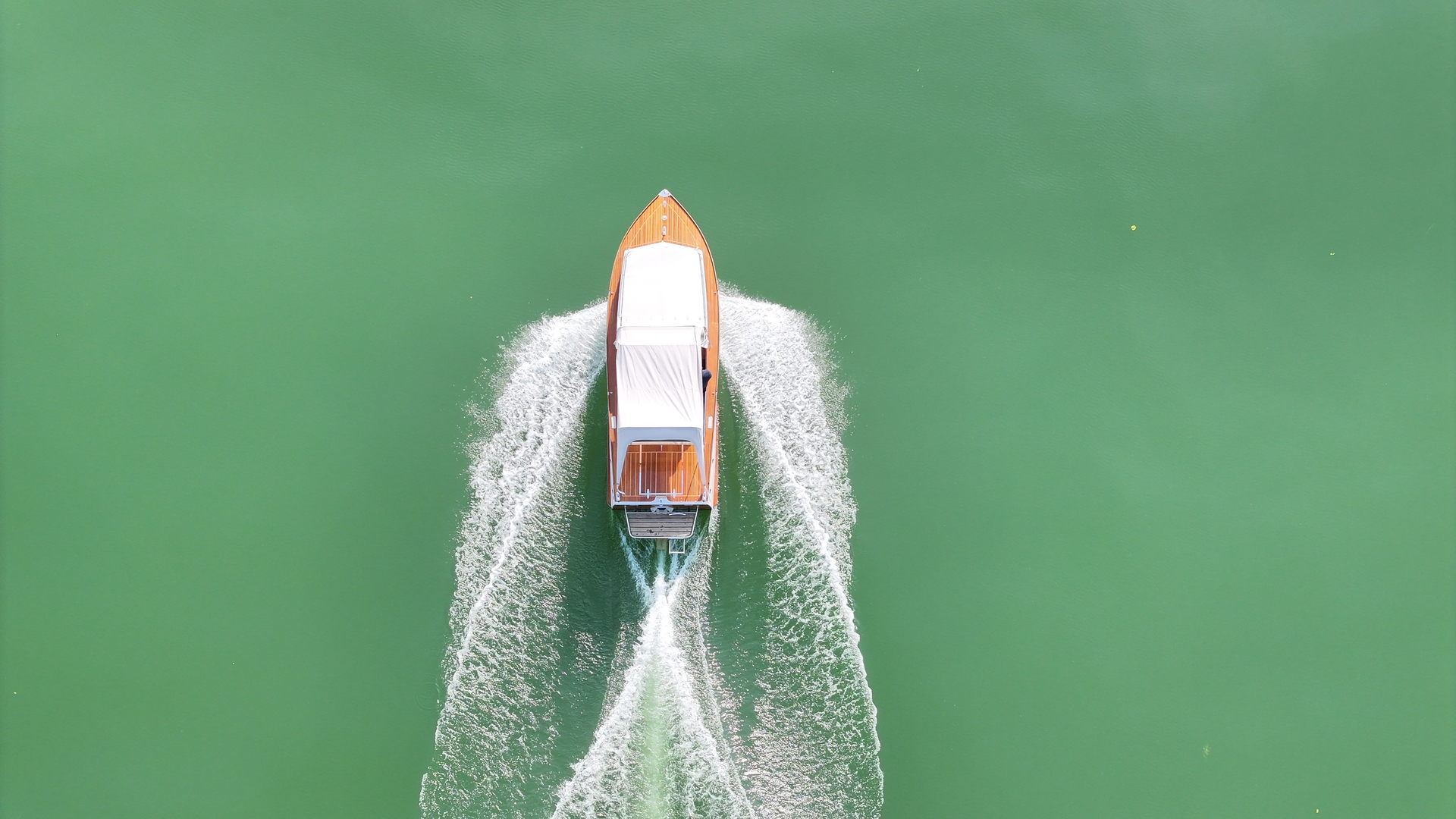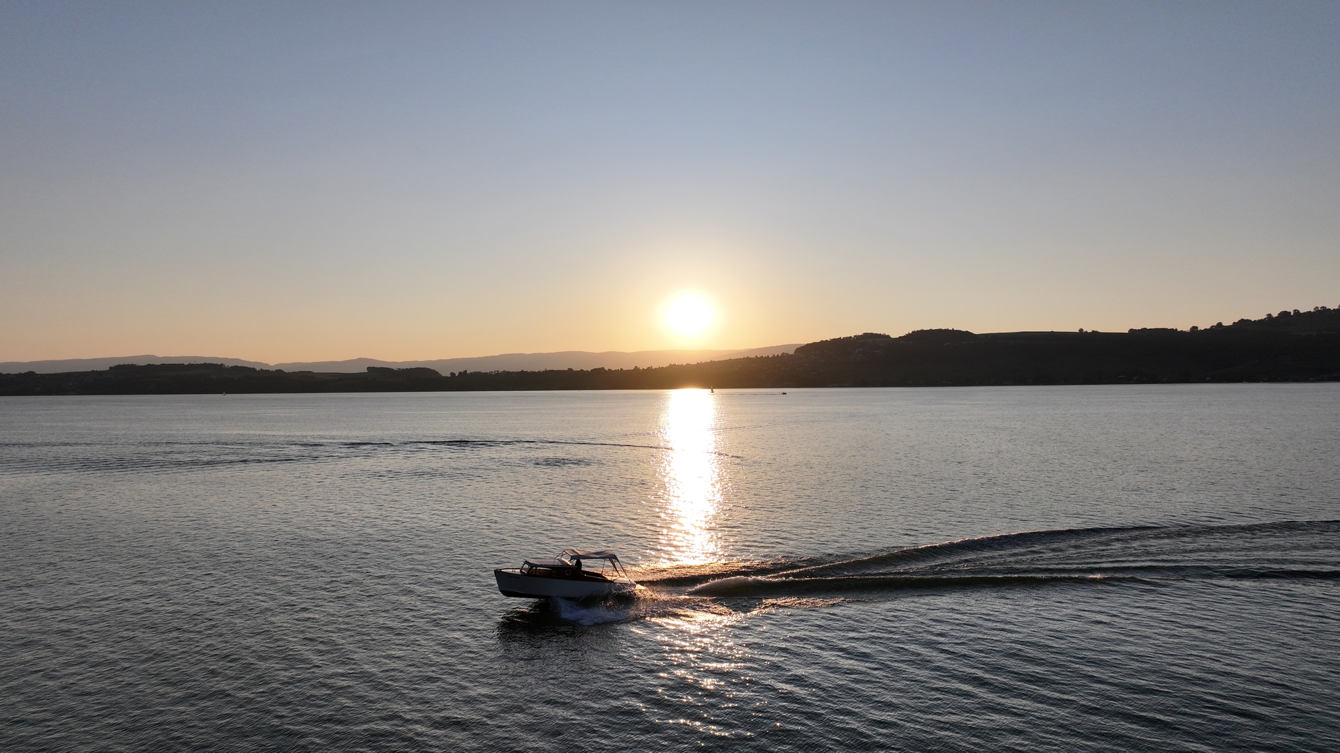 Le charme de l’ancien : à peine sorti de la marina Jack Beck, le volume sonore du Volvo Penta 145 ch est très présent à bord, et ses vibrations font raisonner la carène de contreplaqué, d’autant plus que le rythme est soutenu: nous souhaitons faire le tour des trois lacs et être de retour à Faoug avant le coucher du soleil ! Cela tombe bien, à quelques jours de la fête de la musique, les journées sont longues.