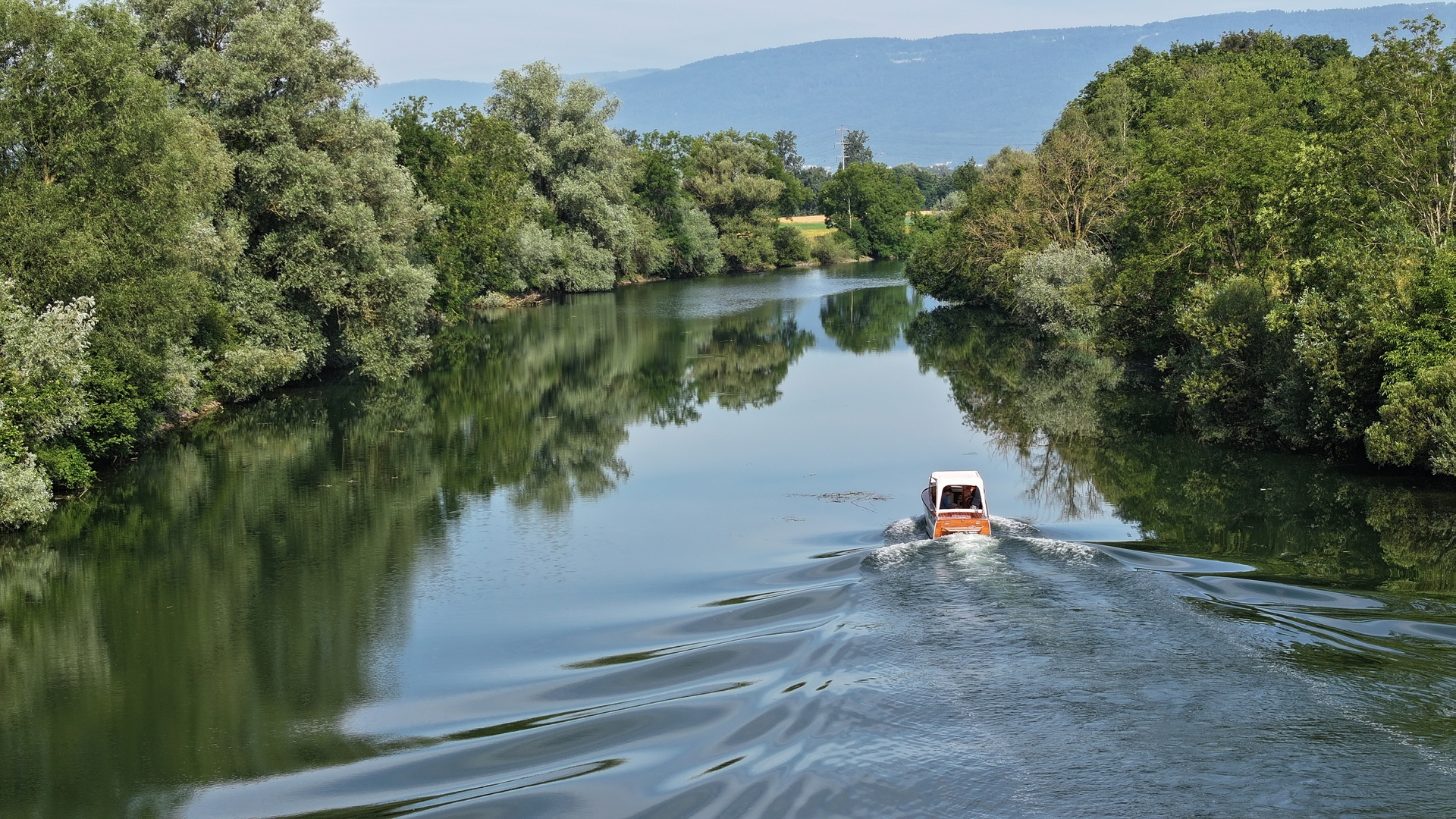 Faisant route vers notre point de départ, vient le moment du débriefing : en une journée de navigation, nous sommes passés par quatre cantons : Vaud, Fribourg, Neuchâtel et Berne, et aurions pu rejoindre Soleure en continuant après l’écluse. Nous avons parcouru environ 100 milles nautiques (185 km), sommes passés de territoires francophones à germanophones, et avons brûlé moins de 100 litres de sansplomb en 10 heures de navigation, soit un très respectable 10 l/h. Pas mal pour une mécanique cinquantenaire !