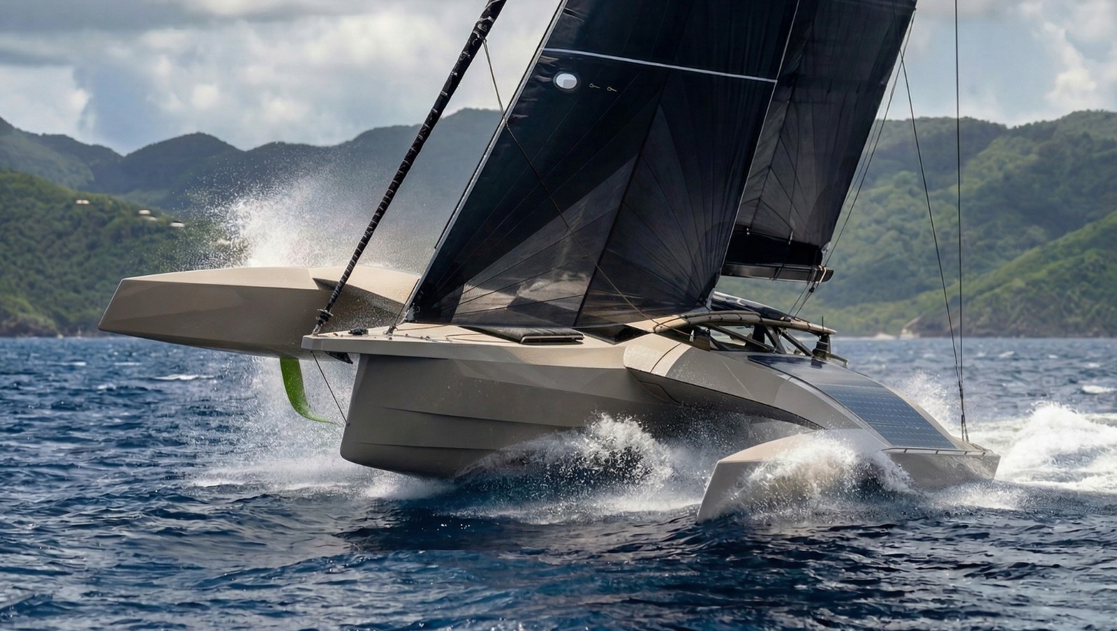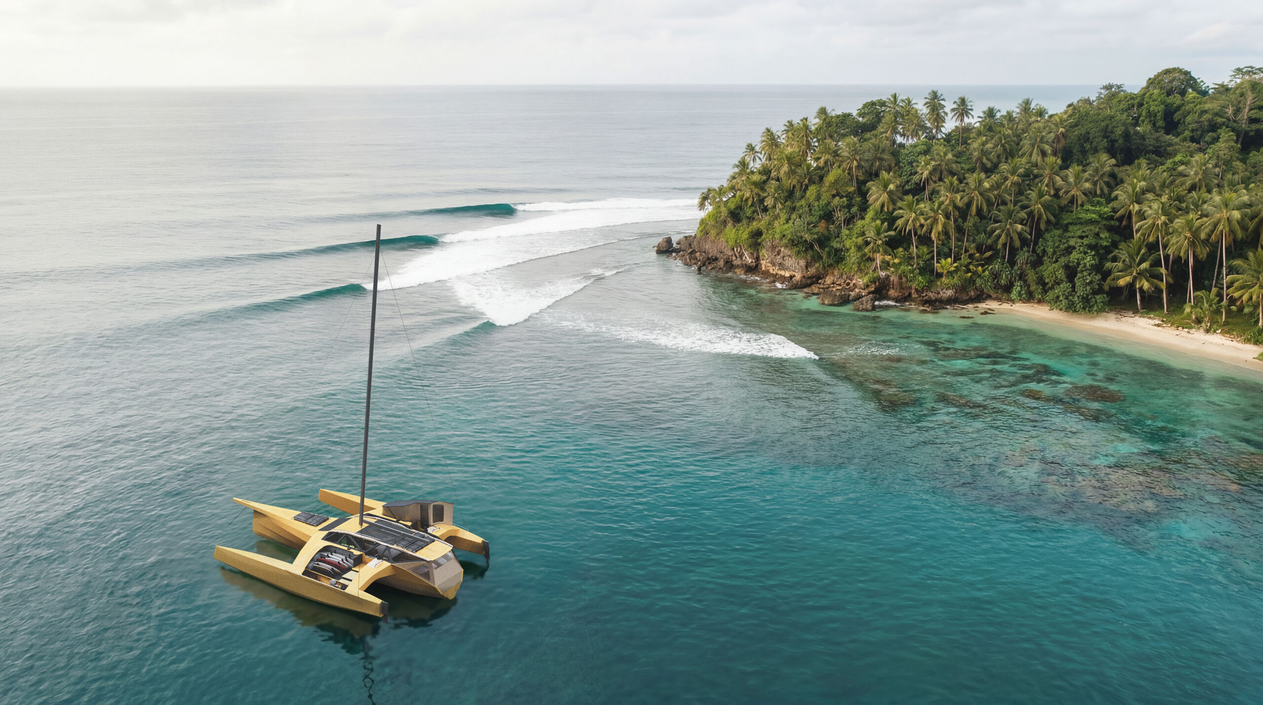 C’est un projet de trimaran qui attire le regard au milieu des catamarans de grande croisière aux volumes et aux aménagements dignes des maisons les plus cossues. À bord de l’Ipsum, la performance et le confort en navigation sont mis en avant, dans une véritable ode aux pionniers des trimarans de course-croisière des années 70.