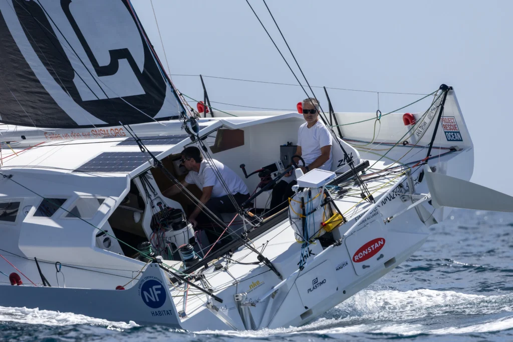 Dix multicoques de 15 m, véloces et exigeants, offriront un spectacle électrique. Les favoris devraient être Erwan Le Roux et Audrey Ogereau (Koesio), dominateurs depuis le début de la saison, mais aussi Matthieu Perraut et Jean-Baptiste Gellée (Inter Invest), Erwan Le Draoulec et Tanguy Le Turquais (Lazare), sans oublier Thibaut Vauchel-Camus, tenant du titre, qui embarquera cette fois Damien Seguin. Ce dernier, fort de deux Vendée Globe à son actif, apportera au tandem une expertise solide. Dans ce plateau, un binôme se distinguera particulièrement: Élodie-Jane Mettraux et Anne-Claire Le Berre (UpWind by MerConcept). Unique équipage féminin de la catégorie (et l’un des cinq de l’épreuve), elles incarneront une énergie singulière. « Notre objectif sera de tirer le meilleur de notre bateau, en le menant toujours plus vite », explique la genevoise. « La Rolex Fastnet Race a été une répétition générale précieuse : rien ne remplace la course. Nous faisons partie des outsiders sérieux même si nous n’avons pas l’un des bateaux les plus récents de la flotte. L’enjeu sera de trouver le bon équilibre, pousser sans dépasser nos limites », ajoute la navigatrice. Une ambition claire qui reflète l’esprit de la classe : rapide, capricieuse et sélective, où chaque équipage devra jouer les équilibristes entre audace et maîtrise.