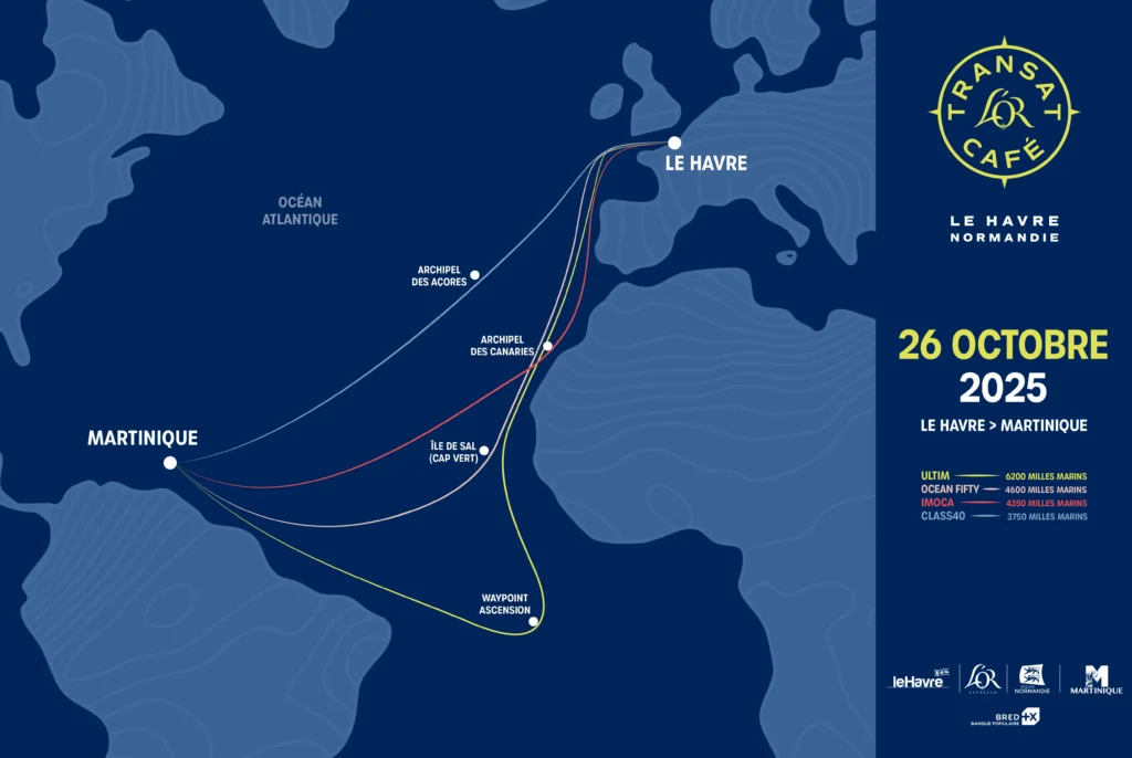 Le 26 octobre, au Havre, les départs s’échelonneront toutes les quinze minutes. Chacune des quatre classes suivra ensuite son propre itinéraire vers Fort-de-France. Les Ultim s’élanceront sur 6’200 milles, avec une boucle spectaculaire jusqu’à l’île de Ascension dans l’hémisphère Sud et deux passages redoutés dans le Pot-au-noir avant la remontée des côtes brésiliennes. Les Ocean Fifty, eux, avaleront 4’600 milles en mettant cap sur le Cap-Vert et son île de Sal avant d’attraper les alizés. Les IMOCA couvriront 4’350 milles avec une descente nerveuse jusqu’aux Alexis CourcouxDR Canaries, puis le choix cornélien entre une route nord vers les dépressions ou sud vers les vents porteurs. Enfin, les Class40, sur 3’750 milles, s’écarteront davantage à l’ouest, avec le franchissement de l’anticyclone des Açores comme point névralgique. Les premiers duos sont attendus autour du 5 novembre, et la ligne d’arrivée fermera le 20 novembre en Martinique.