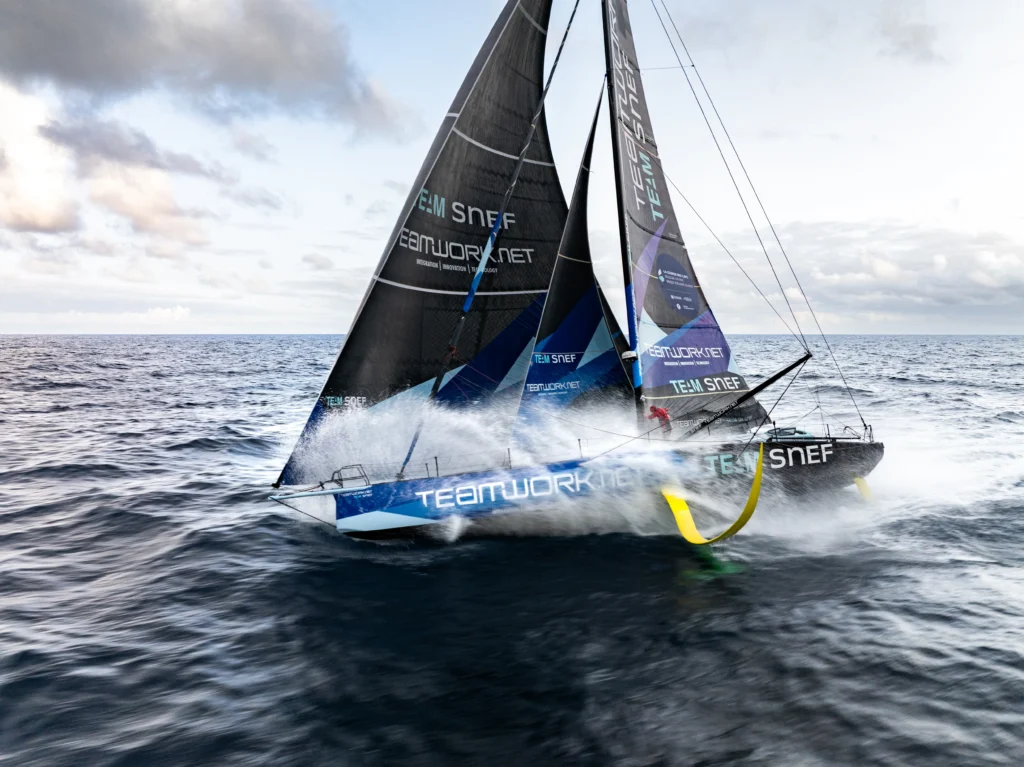 Dix-huit IMOCA prendront le départ, une flottevresserrée mais d’une intensité intacte. Aprèsvl’ivresse du dernier Vendée Globe, la classe avcertes déjà retrouvé le chemin de la compétition,mais la Transat Café L’Or offrira à chacun l’occasion de confirmer… ou de s’affirmer. Parmi les plus observés, Ambrogio Beccaria et Thomas Ruyant (Allagrande Mapei) incarneront une alliance entre fougue italienne et savoir-faire français. Mais ils trouveront, face à eux, Jérémie Beyou et Morgan Lagravière (Charal), Sam Goodchild et Loïs Berrehar (Macif Santé Prévoyance), ou encore Yoann Richomme et Corentin Horeau (Paprec – Arkea). À la barre d’un monocoque mis à l’eau en février dernier, Élodie Bonafous et Yann Eliès se sont déjà distingués avec deux podiums consécutifs – la Course des Caps et la Rolex Fastnet Race. Un démarrage convaincant qui installe le duo parmi les prétendants sérieux. Dans ce peloton relevé, la Suissesse Justine Mettraux s’associera à Xavier Macaire sur TeamWork – Team Snef. Tous deux cumulent déjà trois participations à la fameuse Transat et aborderont cette traversée avec une expérience précieuse, atout déterminant dans une classe où la moindre hésitation peut coûter cher.