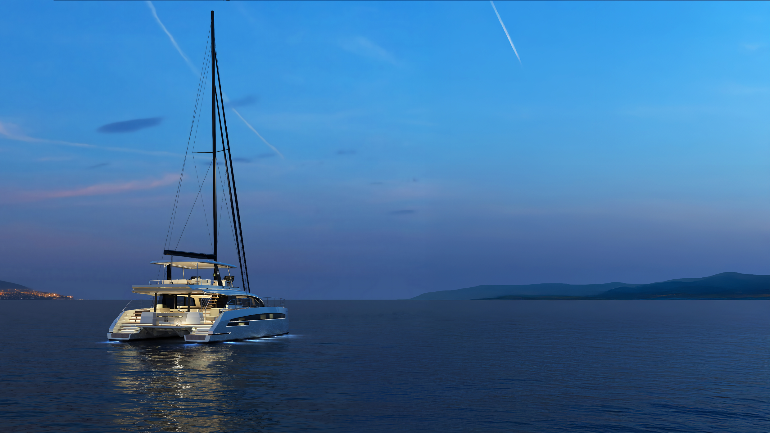 Le catamaran Simbad 55 est exposé pour la première fois au public à l’occasion de l’International Multihull Show. Et son ambition est claire : se faire un nom sur le segment très convoité du catamaran de voyage ou de charter haut de gamme. Basé à Alicante, Simbad Yachts arrive à La Grande-Motte avec ce premier modèle de 17,59 m hors tout, 8,92 m de large pour 28 tonnes de déplacement, signé Pierre Delion pour l’architecture navale et Darnet Design pour les aménagements.