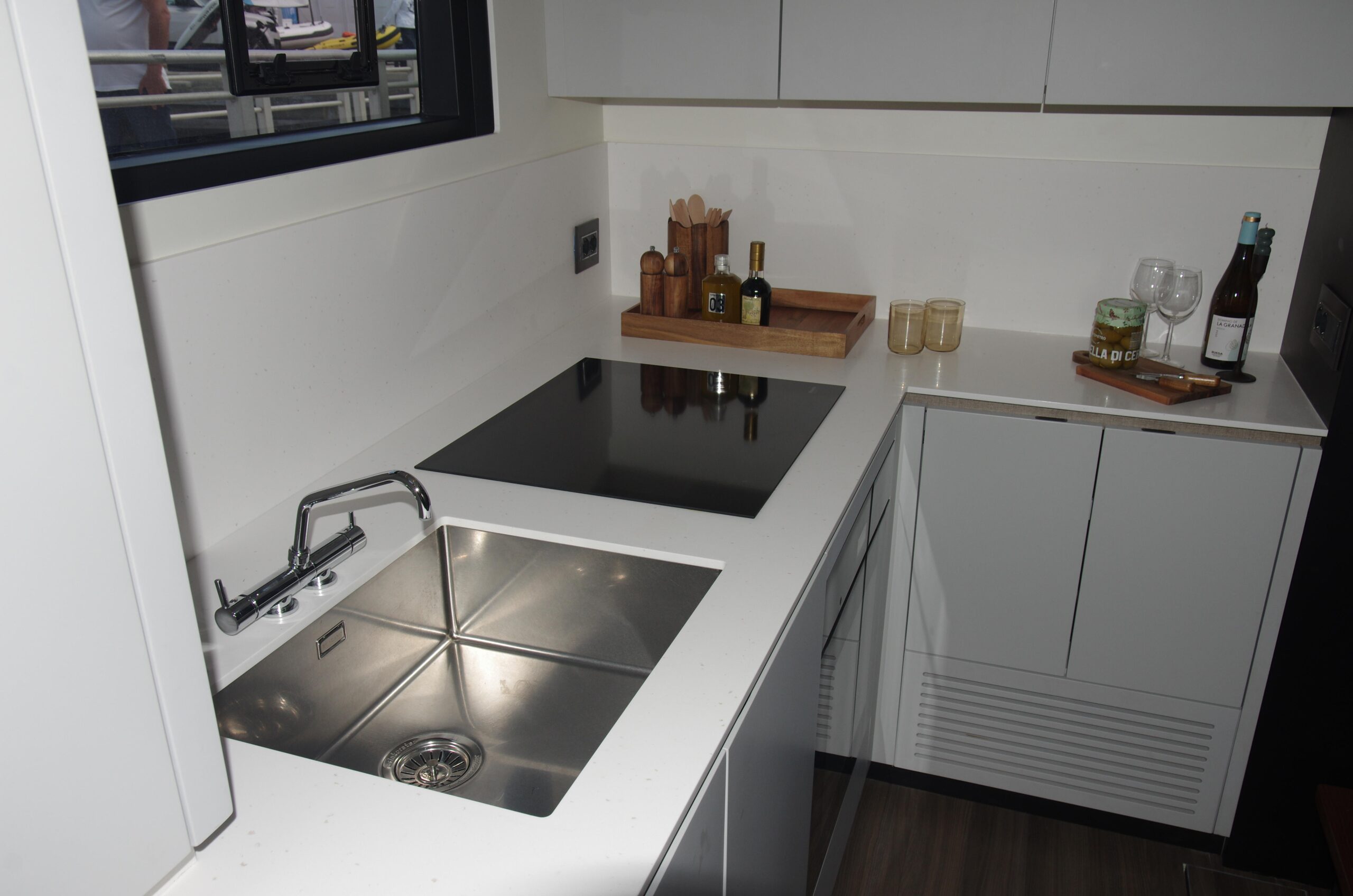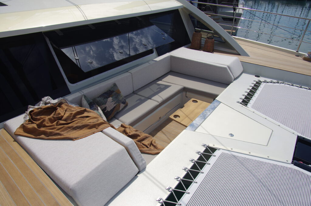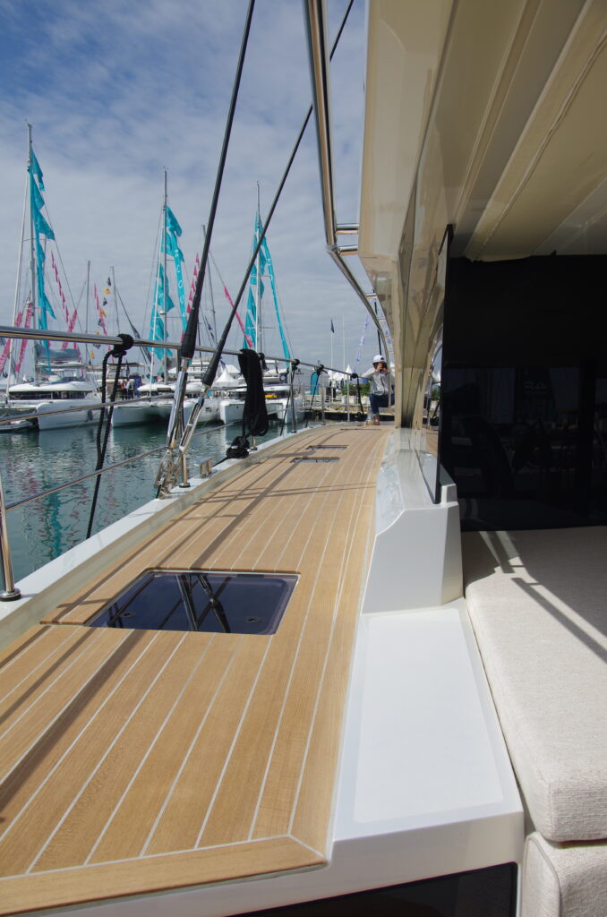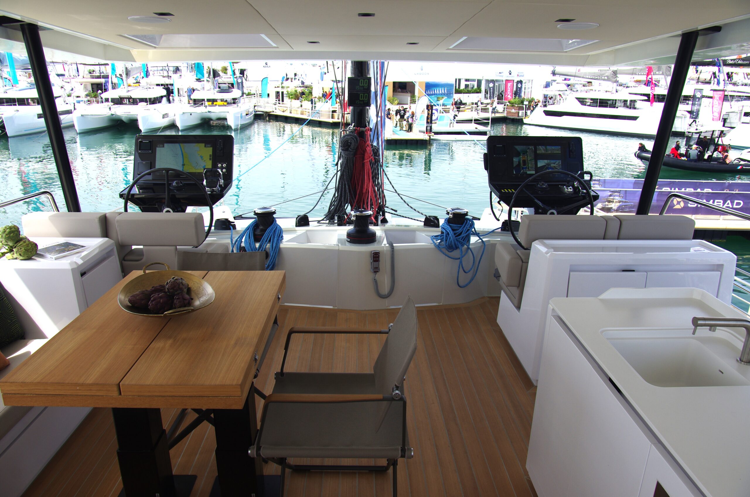 Le résultat est intéressant avec des volumes immenses et la volonté de soigner chaque détail. Car le Simbad 55 s’adresse à des propriétaires exigeants, à la recherche d’un bateau 100% prêt à partir. Le chantier propose en effet uniquement des unités toutes équipées, du dessalinisateur, aux machines à laver, en passant par la plancha, l’échelle de bain repliable électriquement, l’accastillage, les bouts, les voiles…