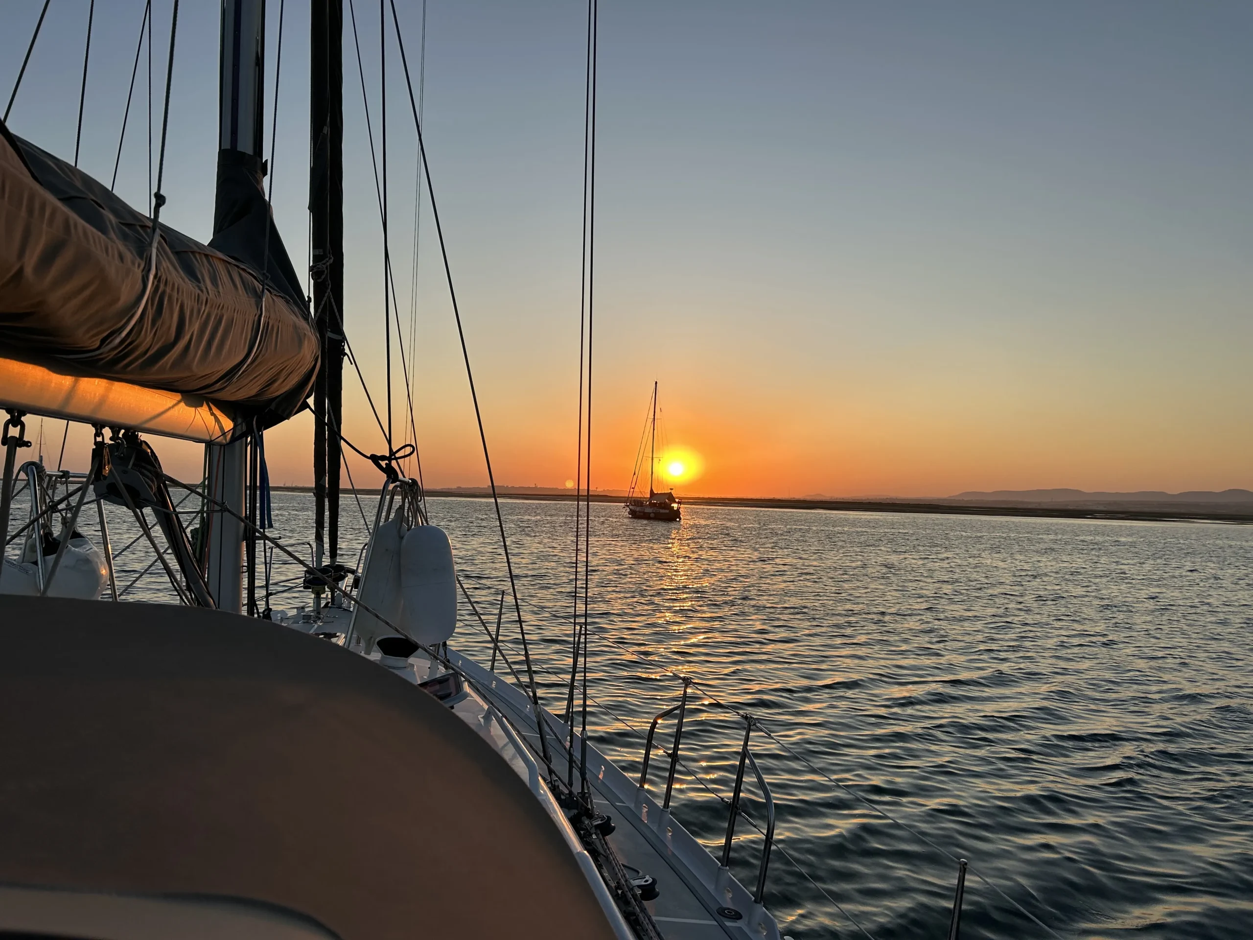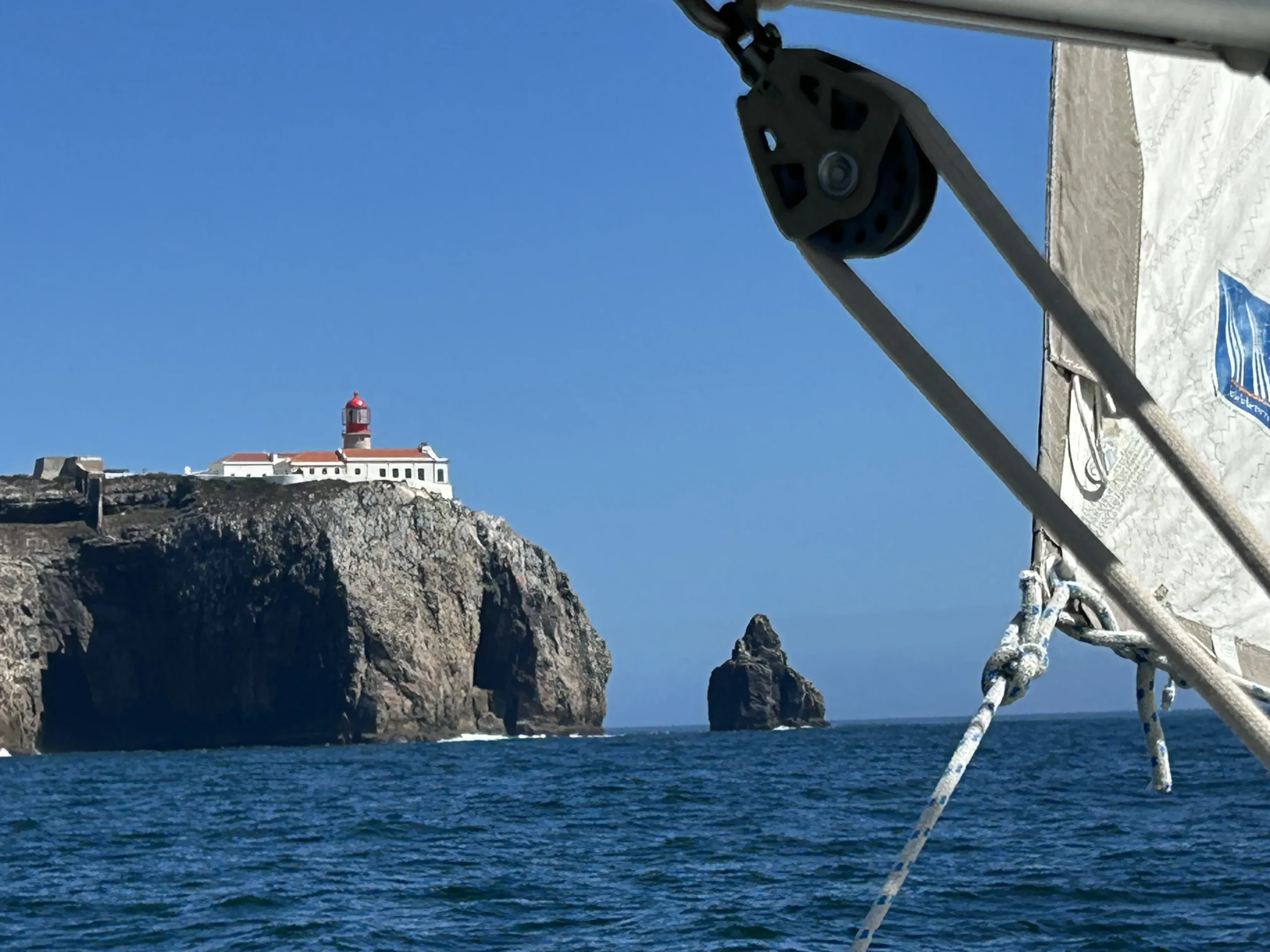 Alors que nous reprenons le sillage laissé trois ans plus tôt, notre voyage se teinte d’autres couleurs. Non parce que les lieux ont changé, mais aussi parce que la lumière, la météo, l’atmosphère d’un instant les réinvente. À Póvoa de Varzim, le contraste est saisissant. Nous avions assisté aux fastes des 500 ans de son église: processions fleuries, chars animés, foule en liesse sous la chaleur, dégustant churros et pommes d’amour sous un feu d’artifice la nuit. Cette fois, la ville nous paraît presque mélancolique. Alors, nous filons vers l’intérieur pour visiter Braga et ses églises baroques. Nous passons une nuit insolite dans un ancien monastère à Guimarães… et, plus loin, à Barcelos, on se fait conter le récit épique du fameux coq, devenu le symbole du Portugal. Cette année, nous faisons l’impasse sur Porto, trop fréquentée à notre goût. Et puis, certains lieux gagnent à rester dans la mémoire, intacts. Comme ce mouillage sur le Douro, un soir d’été. Ou encore l’émotion de remonter le Tage avec Fou de Bassan, passer sous le pont du 25-Avril, puis longer la place du Commerce. Luxe suprême, nous ne sommes pas pressés. Cela laisse place à la sérendipité, ces découvertes heureuses qui naissent lorsqu’on ne cherche rien. Comme ce jour où, en route pour Peniche, nous cédons à l’appel des îles Berlengas, joyau de granit s’élevant au milieu d’une mer émeraude, dont le sentier circulaire offre des vues à couper le souffle. Ou à Peniche, grâce à notre amarrage à triple, une soirée inoubliable s’improvise avec nos voisins. Mais tout n’est pas bleu mer à bord. Un peu d’écume vient parfois troubler l’harmonie. Car derrière les images de liberté, il y a aussi l’envers du rêve. Il faut savoir relever ses manches, mettre les mains dans le cambouis, éponger les fonds de cale, attendre plusieurs jours une pièce de rechange ou gérer un problème. Sans parler de ces heures passées à tenter de comprendre un dysfonctionnement à bord. On appelle cela la zététique : l’art d’adopter une démarche rigoureuse de recherche. Une véritable philosophie de la panne. Notre erreur d’inattention sur l’enrouleur du génois illustre bien ce concept. À la sortie de Cascais, une maladresse transforme une manœuvre banale en galère. Impossible d’enrouler cette maudite voile sous 25 nds de vent. Quatre heures de lutte acharnée plus tard, au milieu de la nuit, nous mouillons devant Sines, épuisés mais soulagés. Coup de cœur pour cette petite ville où est né Vasco de Gama. Dans le port, un pêcheur fantasque nous tend des sardines grillées sur une tranche de pain, accompagnées d’un verre de vin servi dans une vaisselle douteuse. Méfiants d’abord, nous devons l’admettre : le poisson est délicieux. Le soir, un festival de gastronomie anime la ville. Nous reprenons des forces avant de mettre le cap vers le sud.