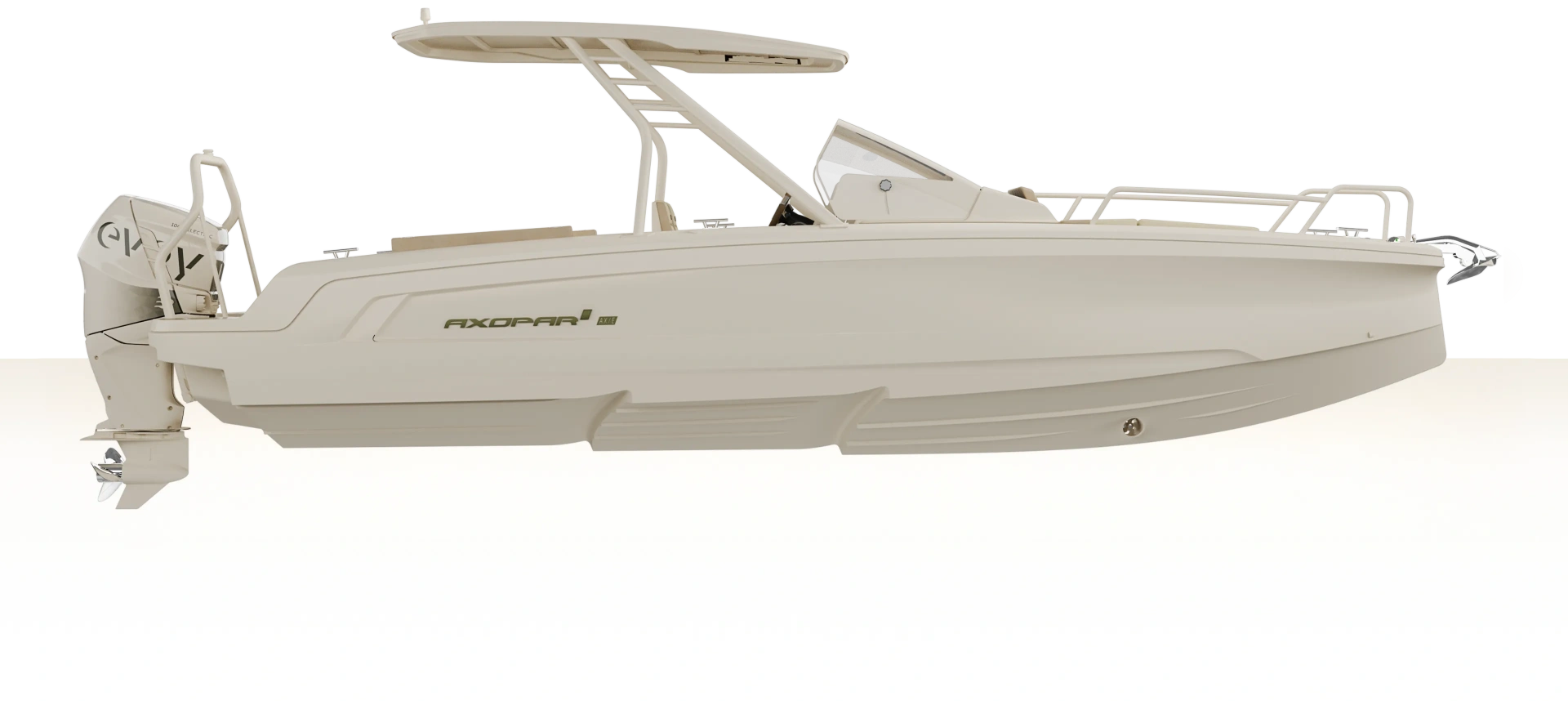 Mit 55 Knoten ist der AX/E25 zweifellos das schnellste Elektroboot auf dem Markt. Möglich machen diesen Topspeed der zweifach gestufte V-Rumpf von Axopar und der Storm 300 des norwegischen Motorenherstellers Evoy mit einer Spitzenleistung von 600 PS. So bestückt kommt der Axopar blitzschnell auf Touren und flotte Gleit- fahrten bei rund 30 Knoten sind völlig normal. Auch die Ladezeit überzeugt: Mit Schnelllader ist der Akku schon in 45 Minuten voll. Das digitale Cockpit von Evoy bietet alle erdenklichen Funktionen und lässt sich intuitiv bedienen. Mit Ausnahme des Elektroantriebs übernimmt der AX/E25 das überzeugende Konzept und die hochwertige Bauqualität des konventionellen 25 Cross Top. Auch er verfügt nur über ein Gangboard, das vom Cockpit über zwei Stufen bis zur Sonnenliege im Vorschiff führt. Darunter befindet sich