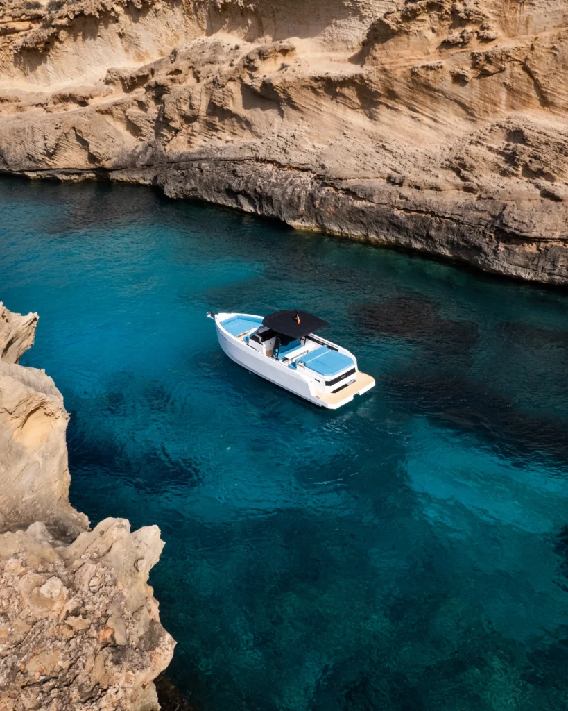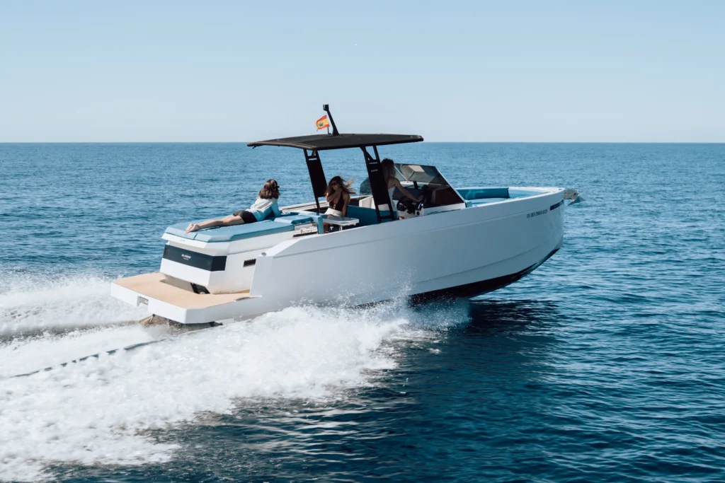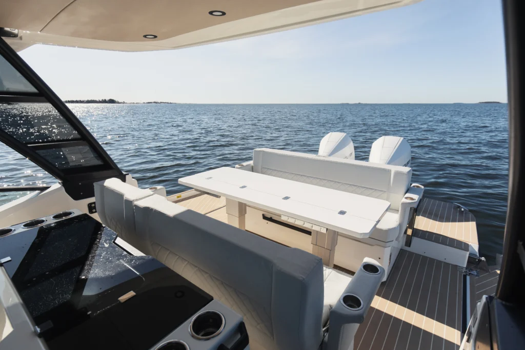 Ausserhalb dieses traditionsbewussten Nischenmarkts hat sich in puncto Design in den letzten zehn Jahren viel getan. Die neu-en Boote sind meist sehr vielseitig einsetzbar und entsprechen dem Zeitgeist. Gerade oder negative Steven ersetzen die schlanken Stufenrümpfe klassischer Sportboote. Ebenso sind die abgeschrägten Dächer grosszügigen Panorama-Aufbauten gewichen, in denen man gut geschützt ist und über mehr Platz und Komfort verfügt. «Diese neuen Designs erlauben eine bessere Raumnutzung», erklärt Balthazar Witzig, Geschäftsführer des Genfer Motorboothändlers Genevaboats. «Mehrere Marken sind auf den Trend aufgesprungen. Fjord (Anm. d. Red.: eine ursprünglich norwegische Werft, die um die Jahrtausendwende vom deutschen Sportboot- hersteller HanseYachts übernommen wurde) war Vorreiter dieses Stils. Saxdor, Pardo und De Antonio zogen nach. Sie alle haben Week- ender und Kabinenkreuzer im Sortiment, die aus dieser Bewegung hervorgegangen sind.» In jüngster Zeit hat sich ein weiteres Gestal- tungselement breit durchgesetzt: Bei immer mehr Modellen lassen sich die Bordwände des Cockpits vor Anker zu einer grossen Badeplattform herunterklappen.