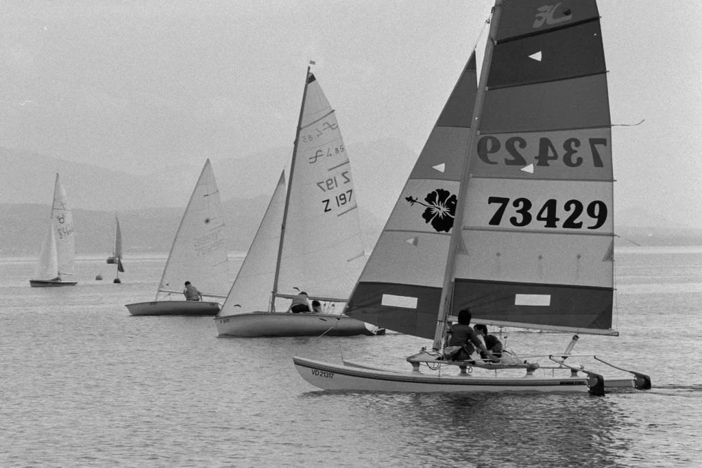 Three quarters of a century ago, the Semaines de la Voile (Sailing Weeks) were like fiercely contested jousts. Pierre Mercier recalls that not every evening was as festive as it is today. “As a child, I used to go racing with my father AndrĂ©, aboard Nausicaa. I was struck by two things. In the changing rooms of the Cercle de la Voile (CVL at the time, in Ouchy), of which a similar building remains, the NANA, Johnny Cornaz aka “Le Chinois” and Jean-Philippe Descoeudres with his boxer face would verbally clash over silly questions of starboard refusal! It was a very masculine world, which hardly accepted