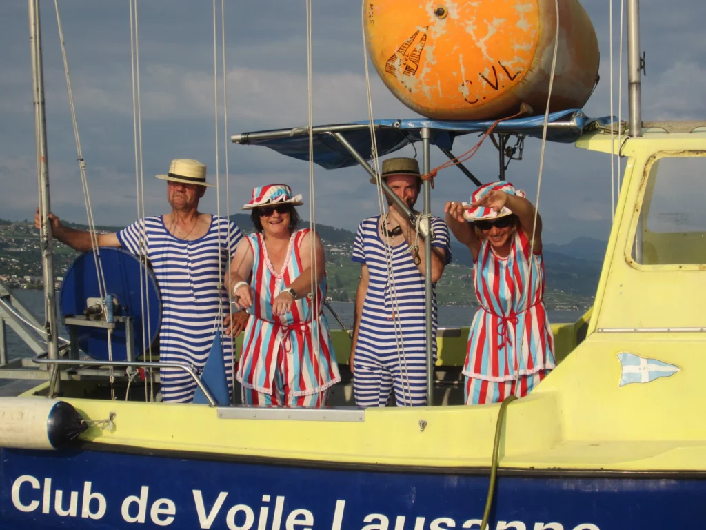 women in regattas. This certainly weighed on the development of the series. And yet, among the regatta sailors of the time, luthier Pierre Gerber, with his undeniable sensitivity, said: “Holding a helm is like holding the bow of a violin. The Semaines du Soir were an opportunity to spend evenings with friends. Before TV and telephone networks.” Former president Chantal Rey underlines the commitment of the organizers: “We were always looking for maximum originality. For the 100th, we had over 50 boats. On Friday evening, we introduced a disguised regatta! One crew went so far as to decorate their boat, and another came as a mountain man, complete with alphorn! It was really hair-raising! But what really scared us was the fear of an incident. During a rough week, a dinghy capsized and we had to wait for the rescue team to intervene.”
