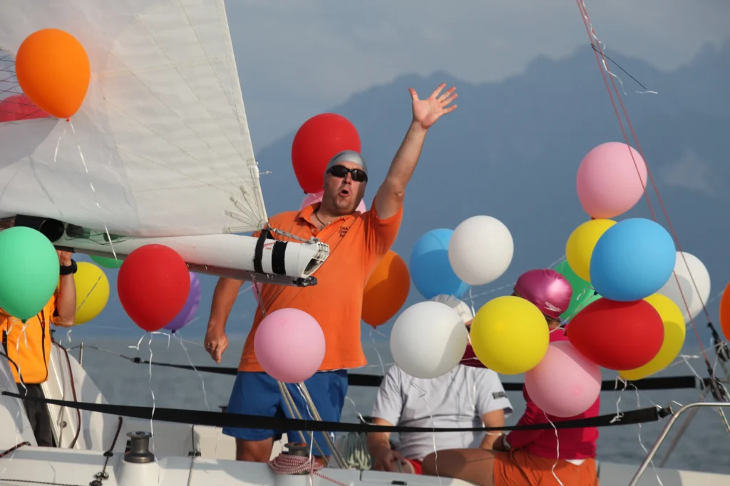 But there are also some sad episodes at the Semaines du Soir. In Versoix, the 1999 event ended with a heavy toll: one drowned and 9 boats sunk. Philippe Durr was aboard the 8 m JI Lafayette. “We had a buoy to turn towards Yvoire. At the start, it was blowing a light drier. On the way back, a violent gale from the airport hit the fleet, decimating it. Nine boats sank by eco-page (side filling). Papillon, Vincent Zanlonghi’s 15 m SNS, a Toucan, a Yngling, the Aga Khan’s Lacustre Roxana, a 30 m… in short, the apocalypse. Aboard Roxana, “Gibus” couldn’t swim. It was Robert Favre, using his watch jacket as a life jacket, who saved him. Guy Budry was less fortunate. We couldn’t see a thing, and there was a thunderous hailstorm. In the storm, he looks for his wife. He found her and saved her. He, not knowing how to swim either, drowned. BenoĂźt Deutsch, CNV sailing instructor and base manager, adds: “In 1999, we didn’t have radar to see the storms coming.” Philippe Durr also remembers the crazy kermesse that was the Semaine du Soir in Versoix: around a hundred boats, 900 people ashore to party! He organized it for 10 years, with local baker Pierrot Marguerat as starter. At first, the plan was to race only one evening…