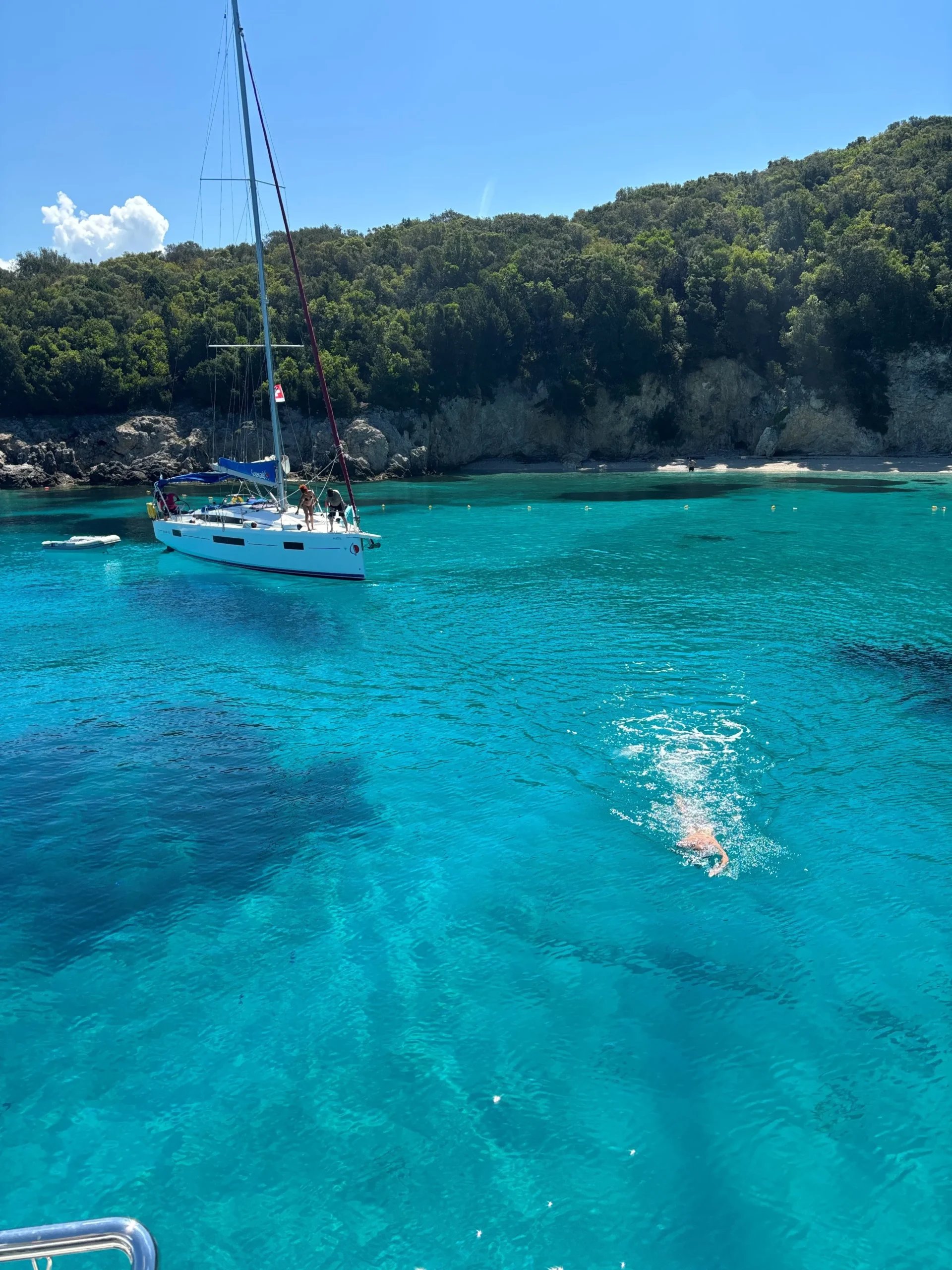 Here’s a glimpse of what’s in store for participants in our reader’s voyage, some of whom have been loyal to us for 15 years, so much do they appreciate the conviviality and solidity of the organization. The Swiss fleet consists of 10 latest-generation one-designs (Sunsail / Moorings 410 with 3 double cabins), whose skippers meet daily on the flagship for briefings and instructions from the race committee. Some crews are in regatta mode, others in cruising mode, but all are in good spirits!